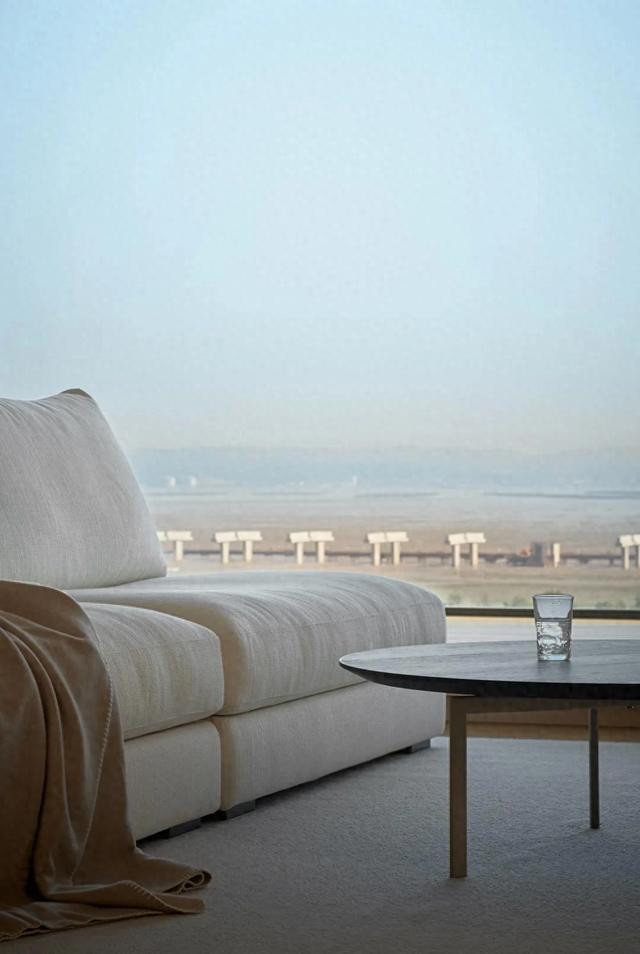 本案背靠市区,面朝乐清湾,在陆地与海湾线的交界中,浮游于舒朗尺度。